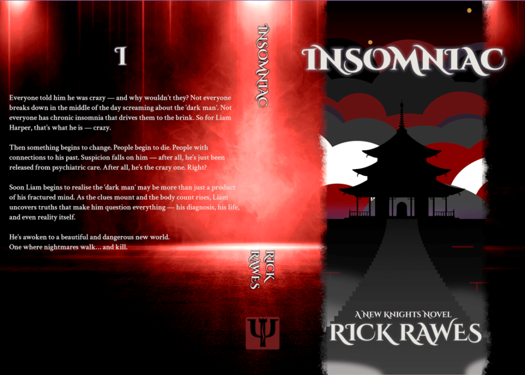 So, it’s been a while since we’ve done one of these. Almost since…well, summer. Now, before you get too excited it’s not a brand-new book (that’s still well on track for February 16th, 2026 – Bastet if you please). Instead, since my relaunch I’ve been steadily working on releasing all the Rick Rawes back catalogue in brand new refreshed paperback glory. I always will enjoy a paperback best. Thus, I’m happy to announce that Insomniac, my first true horror novel, is releasing in a refreshed paperback form just in time for 2025’s spooky season!
