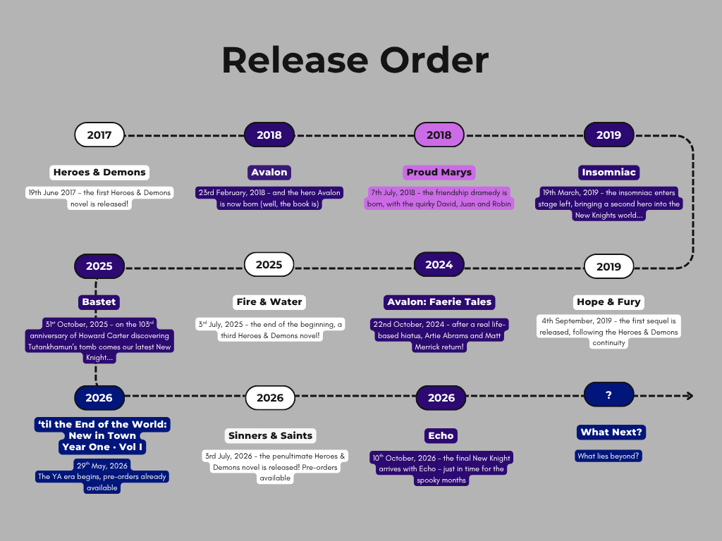 - Avalon: Faerie Tales (22nd October, 2024 – Book 2 of the Avalon series, within The First Oath of the New Knights saga)